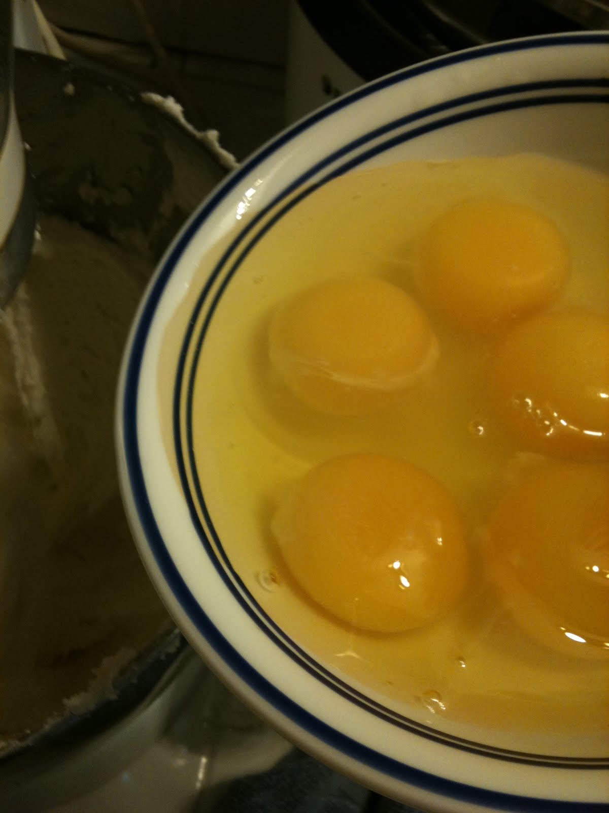 You do this for 3-5 minutes until everything is nice and creamy. That's what we're doing at this point, I forgot to mention: Creaming the butter. Or the eggs. We're creaming something. Don't look at me.